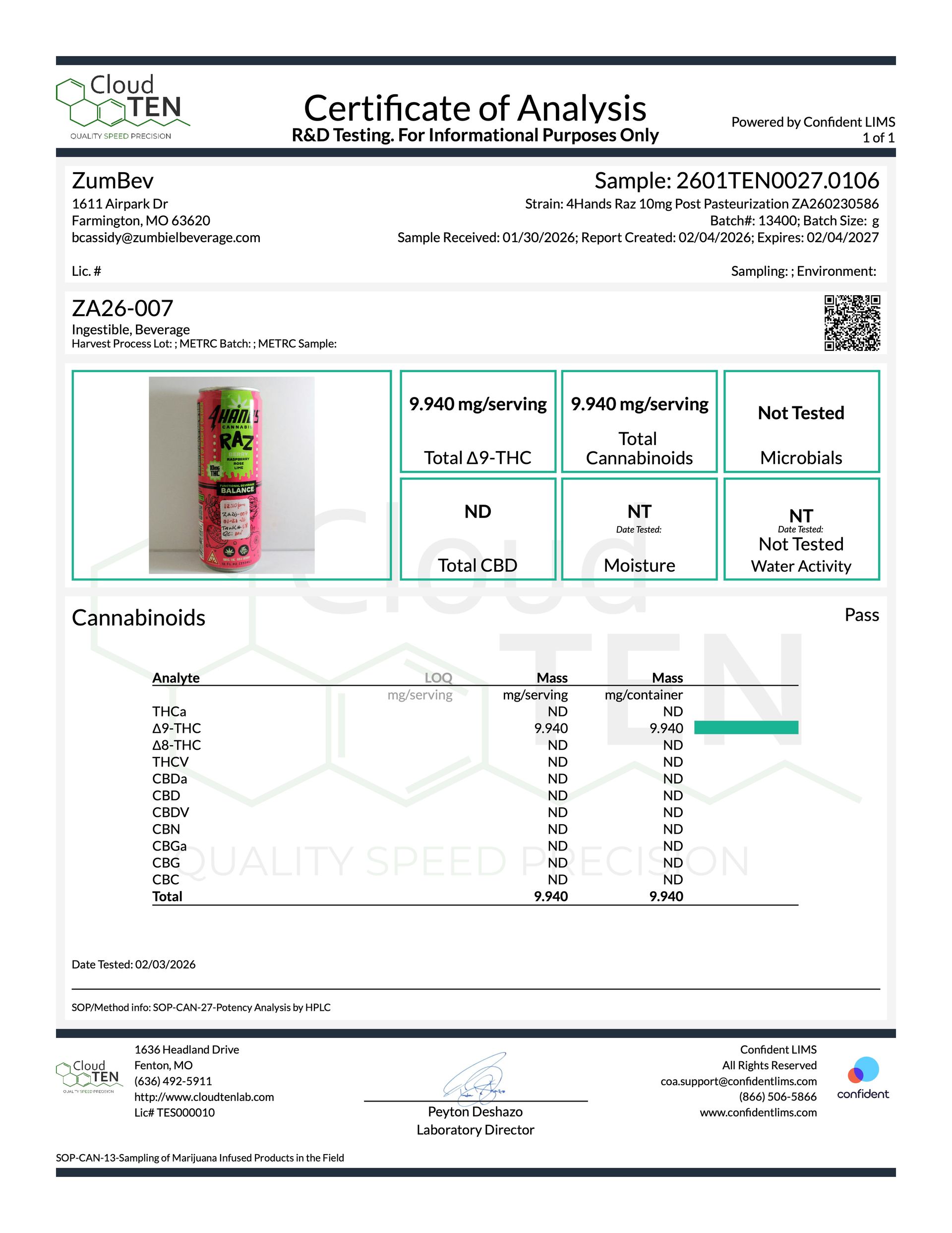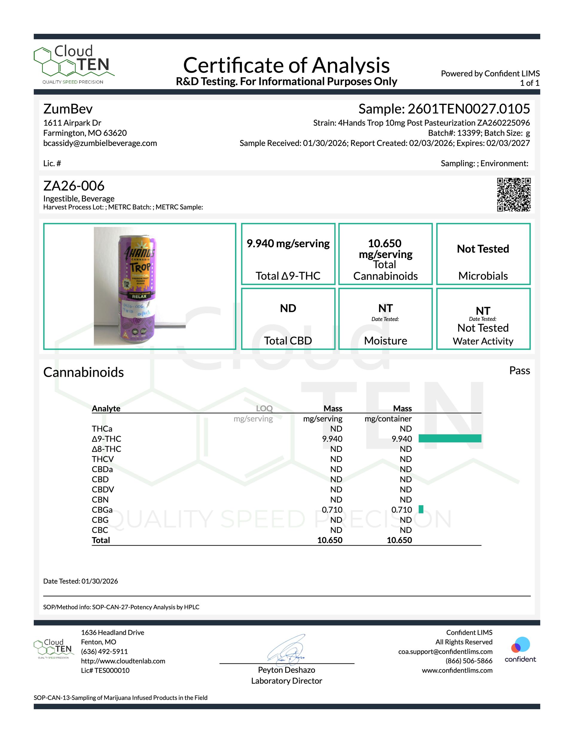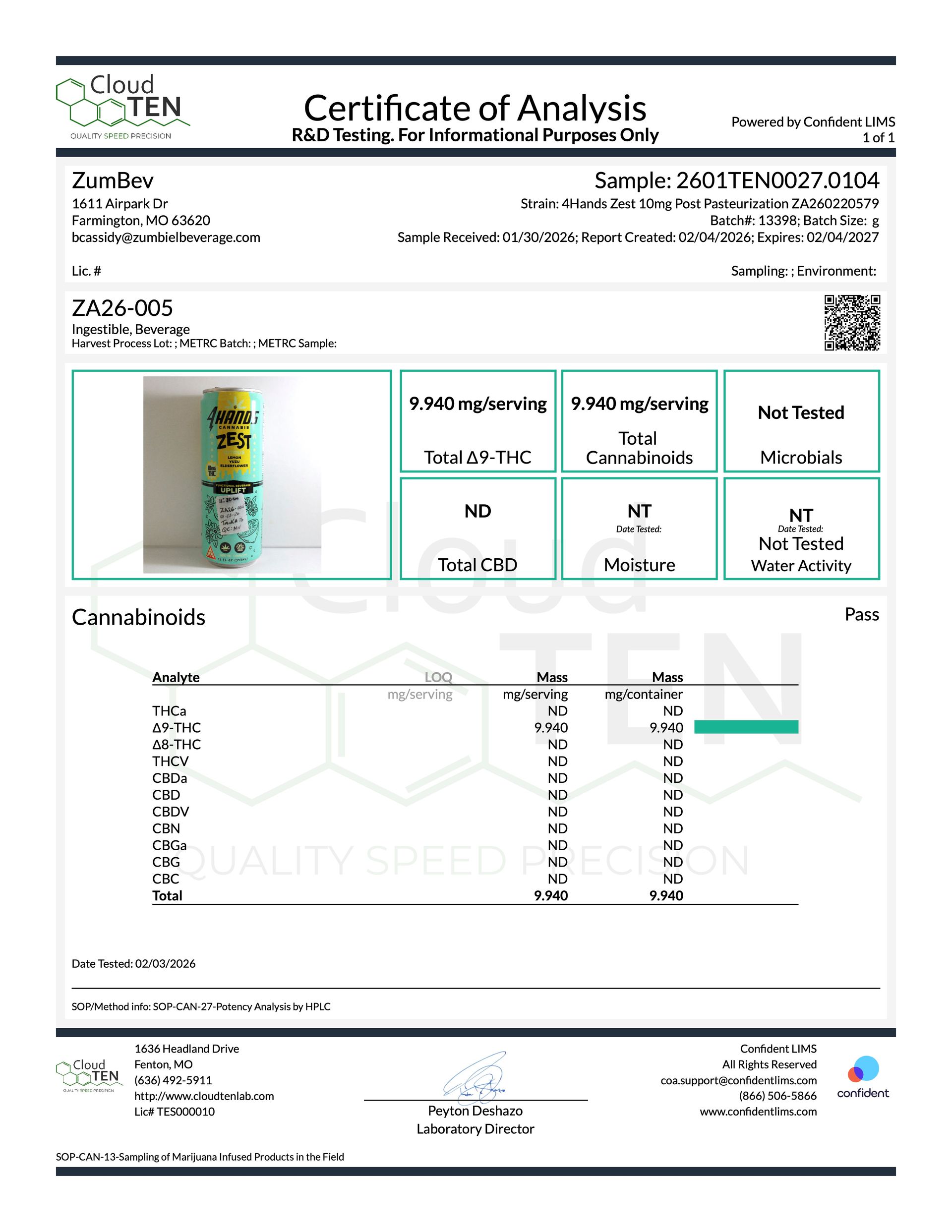 Each batch of Zest, Raz and Trop is independently certified and tested. As we receive certificates of analysis, you'll be able to match the identifying codes from the bottom of your can to a corresponding lab analysis report guaranteeing quality, compliance and consistency.